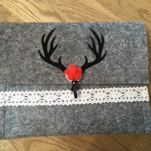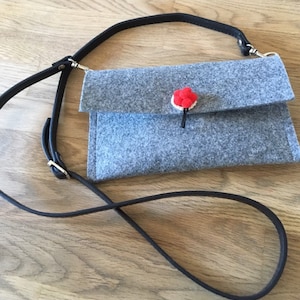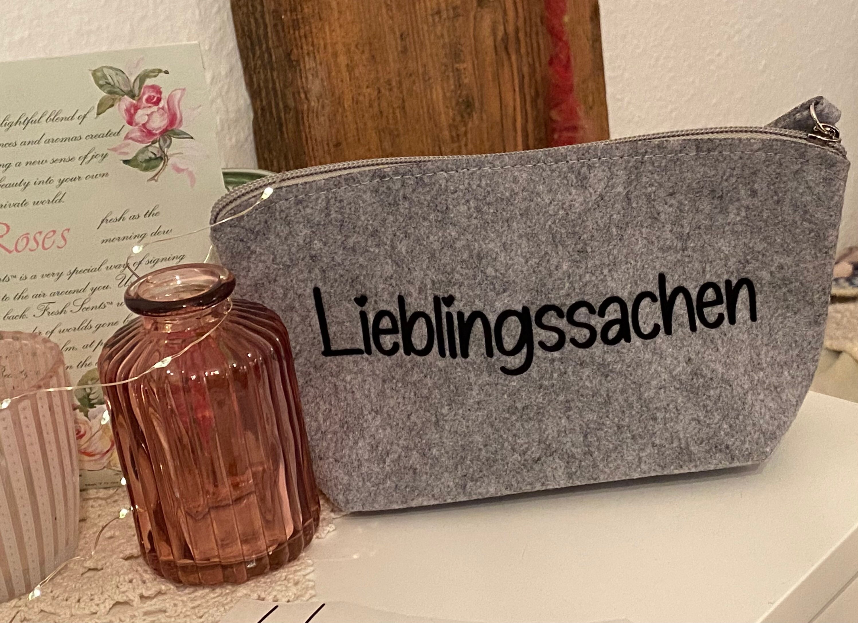 Felt-look bag with zipper and the inscription "Favorite things".