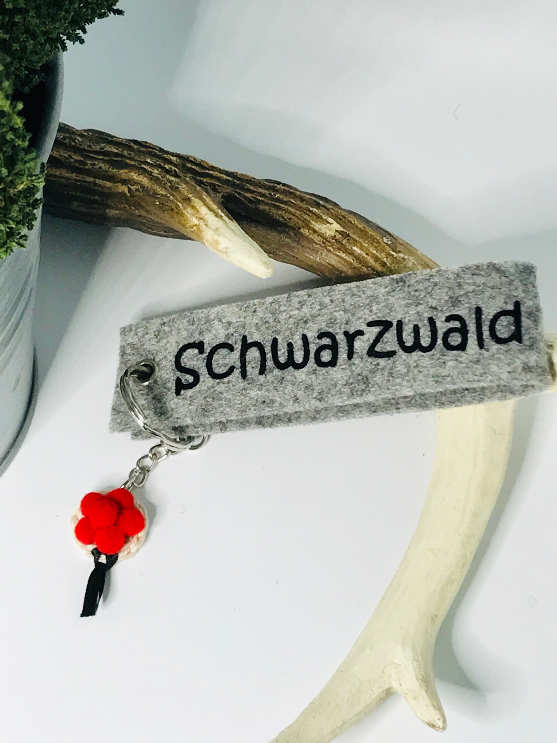 Handmade keychain with a small handmade Bollenhut.